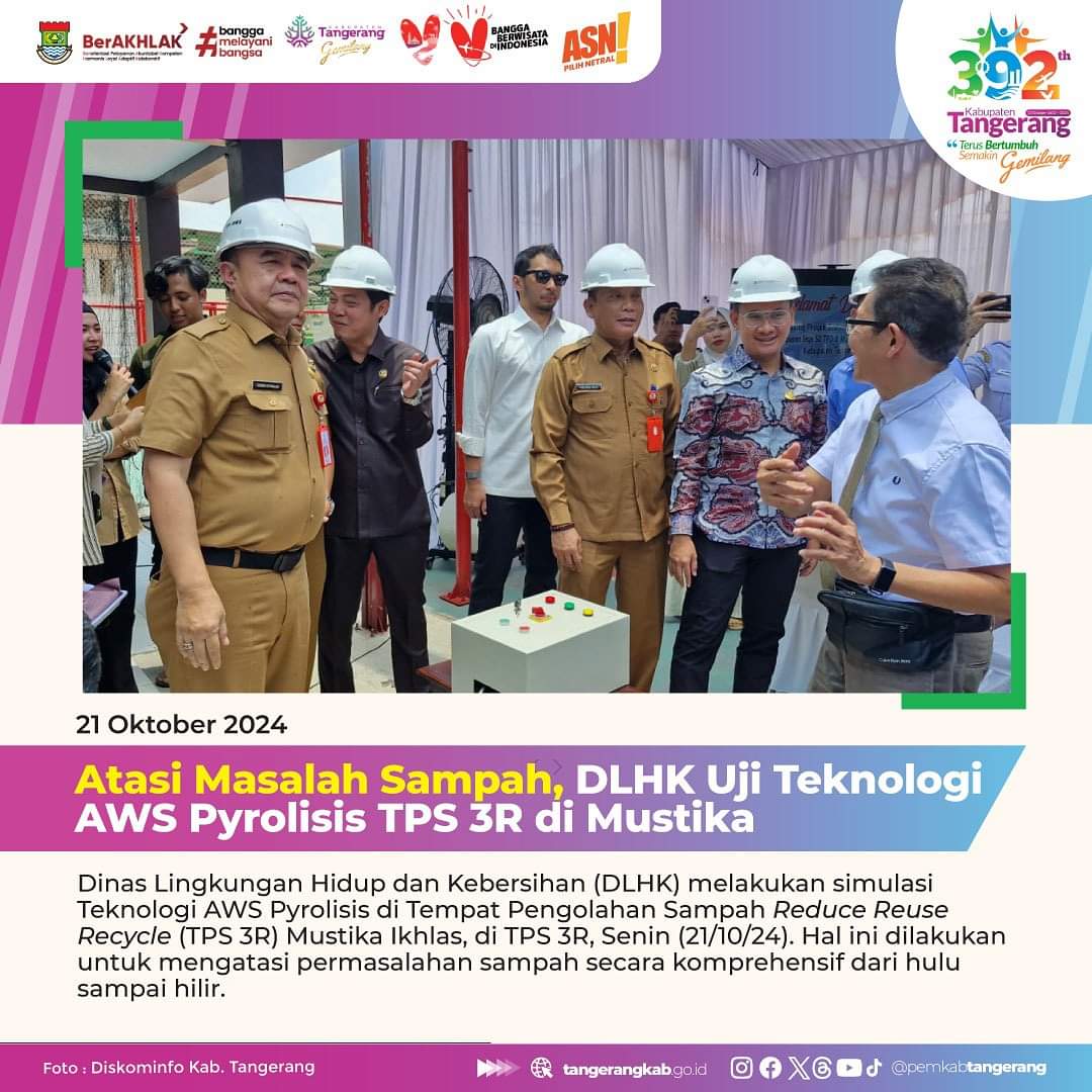 TANGERANG, (beritasiber.co.id) – Pemerintah Kabupaten Tangerang melalui Dinas Lingkungan Hidup dan Kebersihan (DLHK) melakukan simulasi Teknologi AWS Pyrolisis di Tempat Pengolahan Sampah Reduce Reuse Recycle (TPS 3R) Mustika Ikhlas. Hal ini dilakukan sebagai upaya untuk mengatasi permasalahan sampah secara komprehensif dari hulu sampai hilir.