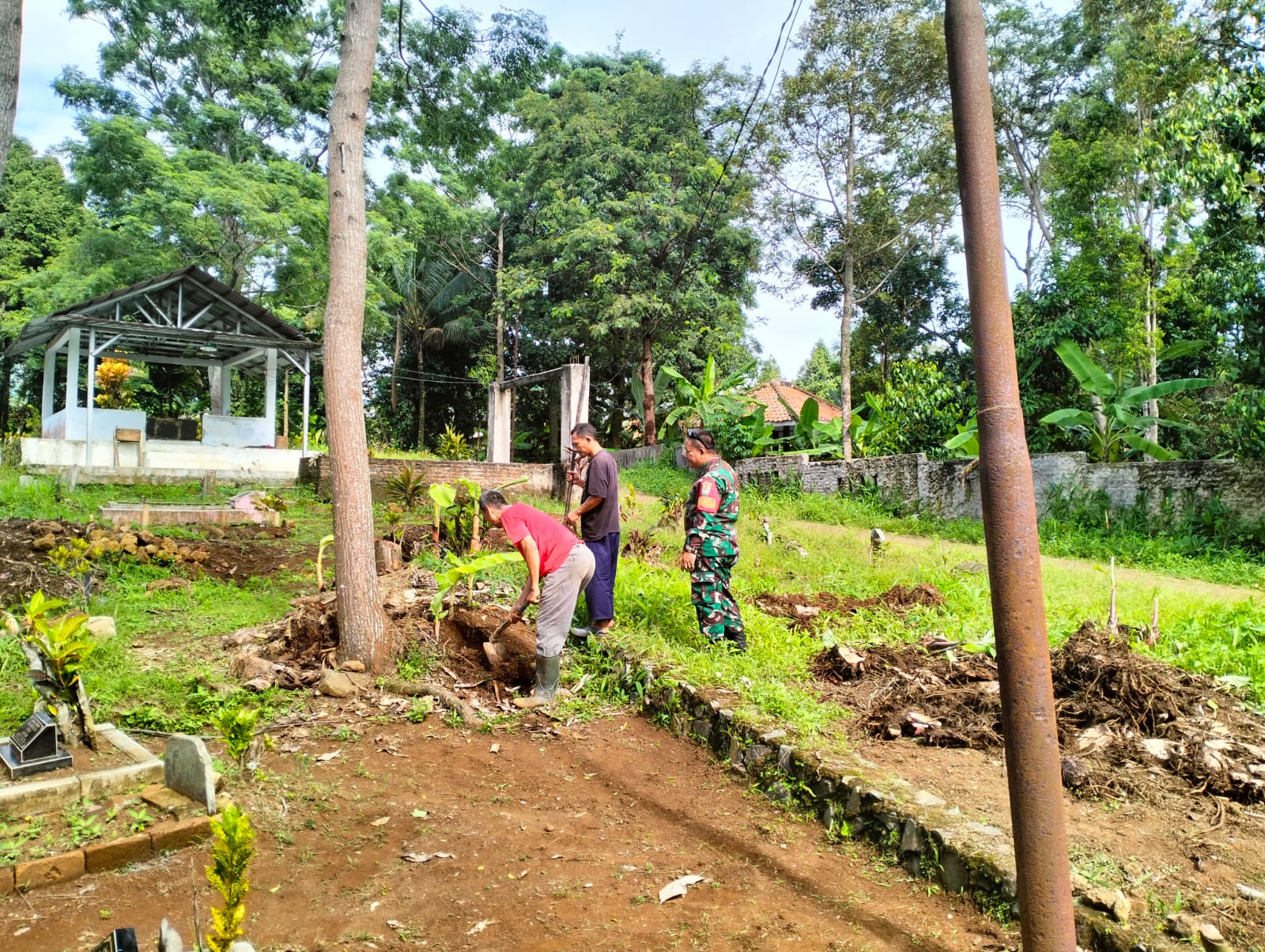 (beritasiber.co.id) – Babinsa Koramil 0102/Cadasari Kodim 0601/Pandeglang Sertu Butono bersama warga kerja bakti membersihkan Tempat Pemakaman Umum (TPU) Kadu peudang Kelurahan Kadumerak Kecamatan Karang Tanjung Pandeglang Banten, Senin (06/01/25)