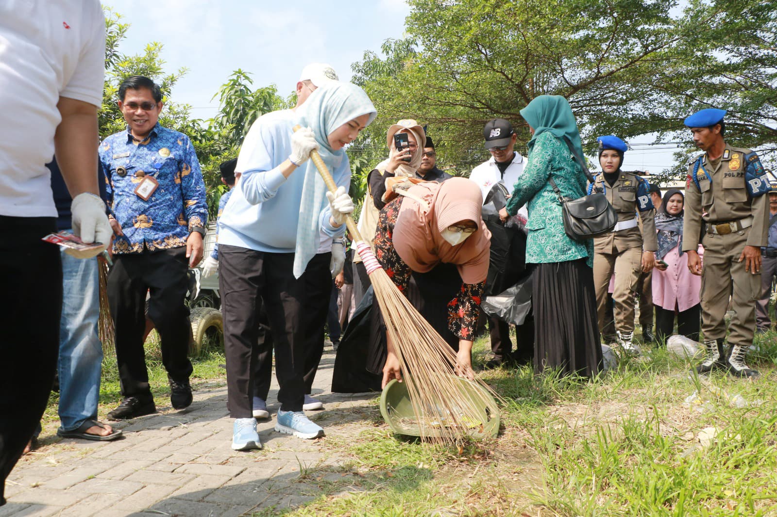 Bupati Serang Ratu Rachmatuzakiyah didampingi Wakil Bupati Muhammad Najib Hamas berjalan kaki di bawah terik matahari untuk membersihkan sampah. Permasalahan sampah, merupakan salah satu program prioritas 100 hari kerja Bupati-Wakil Bupati Serang periode 2025-2030.