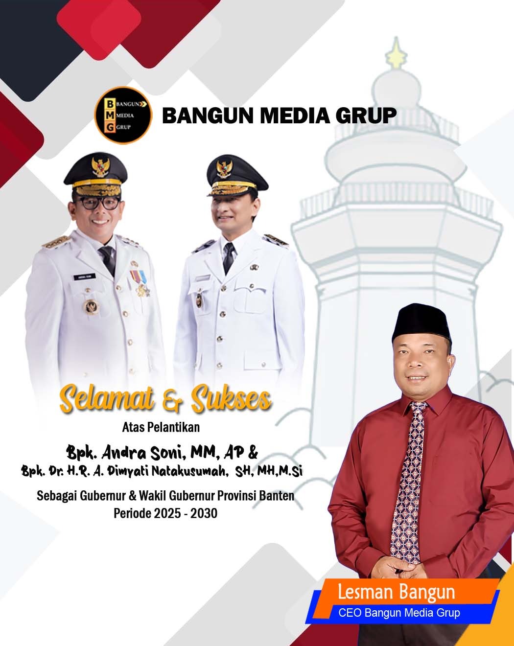 CEO BANGUN MEDIA GRUP, LESMAN BANGUN: “SELAMAT ATAS PELANTIKAN GUBERNUR DAN WAKIL GUBERNUR BANTEN PERIODE 2025-2030”