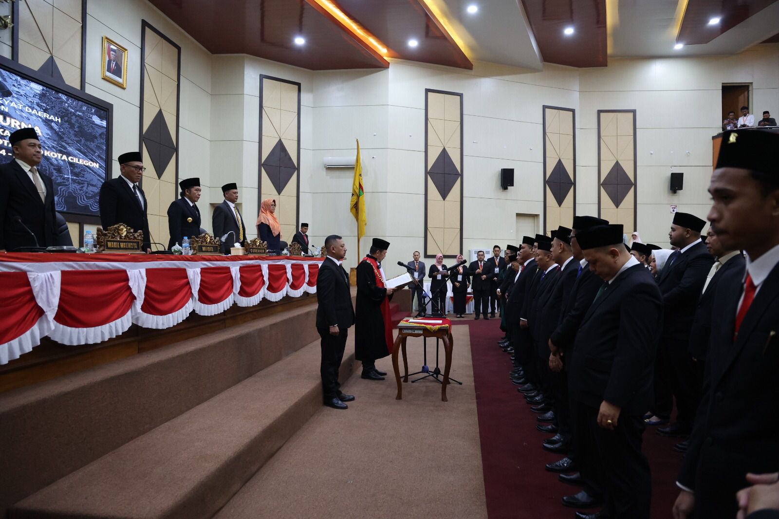Pengucapan Sumpah/Janji 40 Anggota DPRD Kota Cilegon masa jabatan 2024 – 2029 berdasarkan Keputusan Gubernur Nomor 293 Tahun 2024 tentang Peresmian Pemberhentian Anggota DPRD Kota Cilegon Masa Jabatan 2019 – 2024 dan Peresmian Pengangkatan Anggota DPRD Kota Cilegon Masa Jabatan 2024 – 2029.