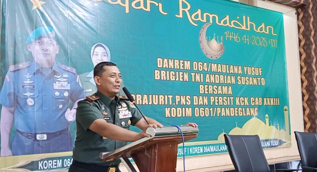 (beritasiber.co.id) – Komandan Korem 064/Maulana Yusuf Brigjen TNI Andrian Susanto S.I.P., M.Han., M.I.Pol., lakukan Safari Ramadhan 1446 H di Makodim 0601/Pandeglang, Jalan pendidikan no 1 Pandeglang, Rabu (12/03/25).