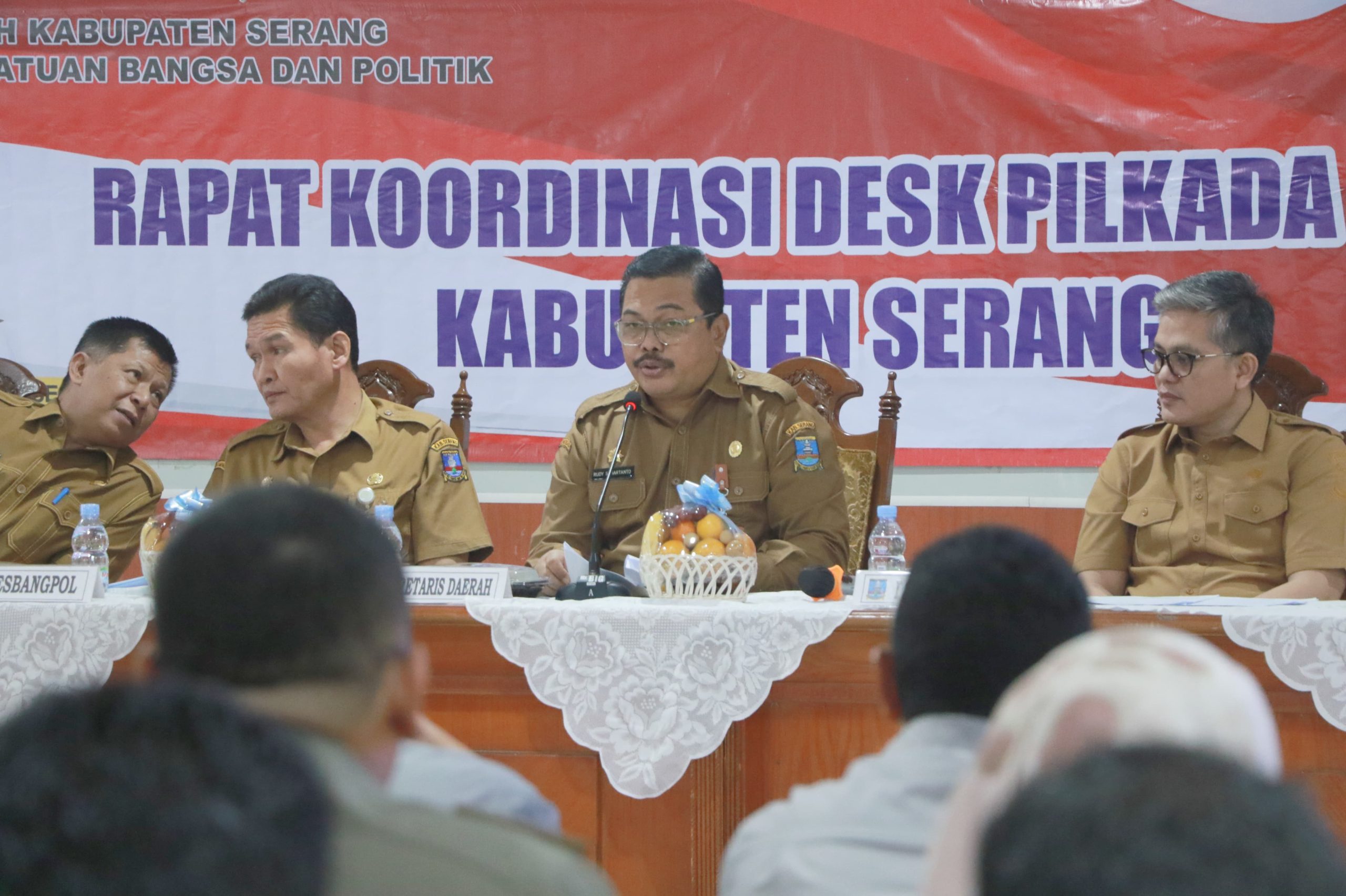 Hal itu disampaikan Penjabat Sekretaris Daerah (Pj Sekda) Kabupaten Serang, Rudy Suhartanto, usai Rapat Koordinasi Desk Pilkada Kabupaten Serang Tahun 2024 yang digelar Badan Kesatuan Bangsa dan Politik (Bakesbangpol) di Aula Tb Suwandi pada Selasa, 19 November 2024. Turut hadir para Staf Ahli Bupati, para Asda, para Kepala OPD, dan perwakilan dari 29 kecamatan.