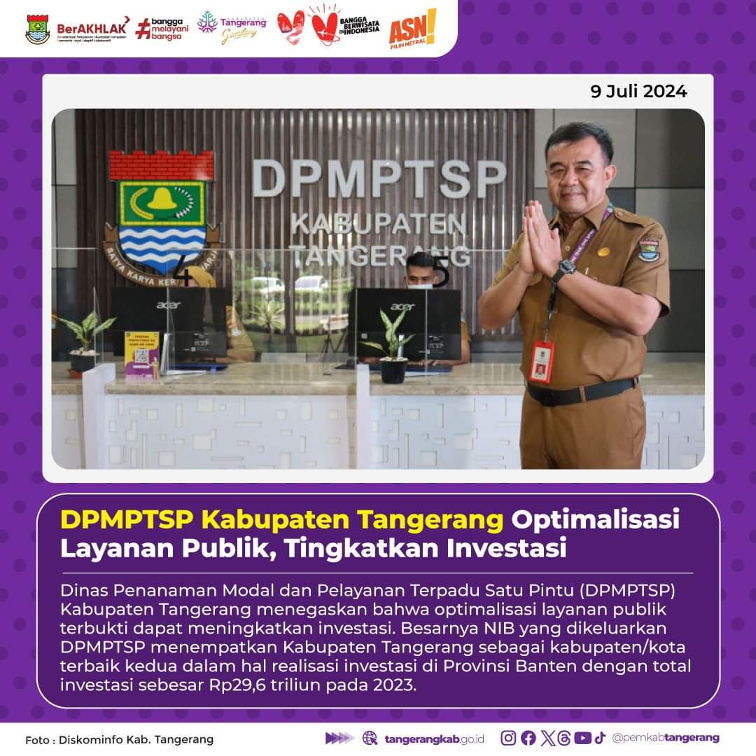 TANGERANG – (beritasiber.co.id) – Dinas Penanaman Modal dan Pelayanan Terpadu Satu Pintu (DPMPTSP) Kabupaten Tangerang menyatakan optimalisasi layanan publik terbukti dapat meningkatkan investasi.