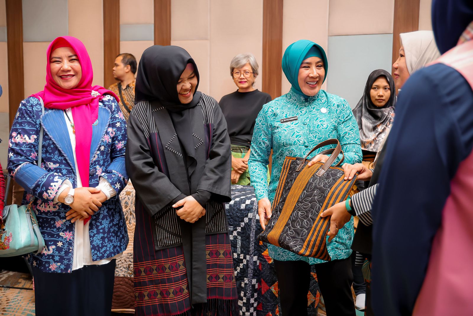 (beritasiber.co.id) – Penjabat (Pj) Ketua Dewan Kerajinan Nasional Daerah (Dekranasda) Provinsi Banten Tine Al Muktabar mendampingi Ketua Harian Dekranas Tri Tito Karnavian saat membuka kegiatan Bimbingan Teknis dalam rangka Penyelenggaraan Seni Menjahit dan Kerajinan yang diselenggarakan Direktorat Jenderal Bina Pembangunan Daerah Kemendagri.