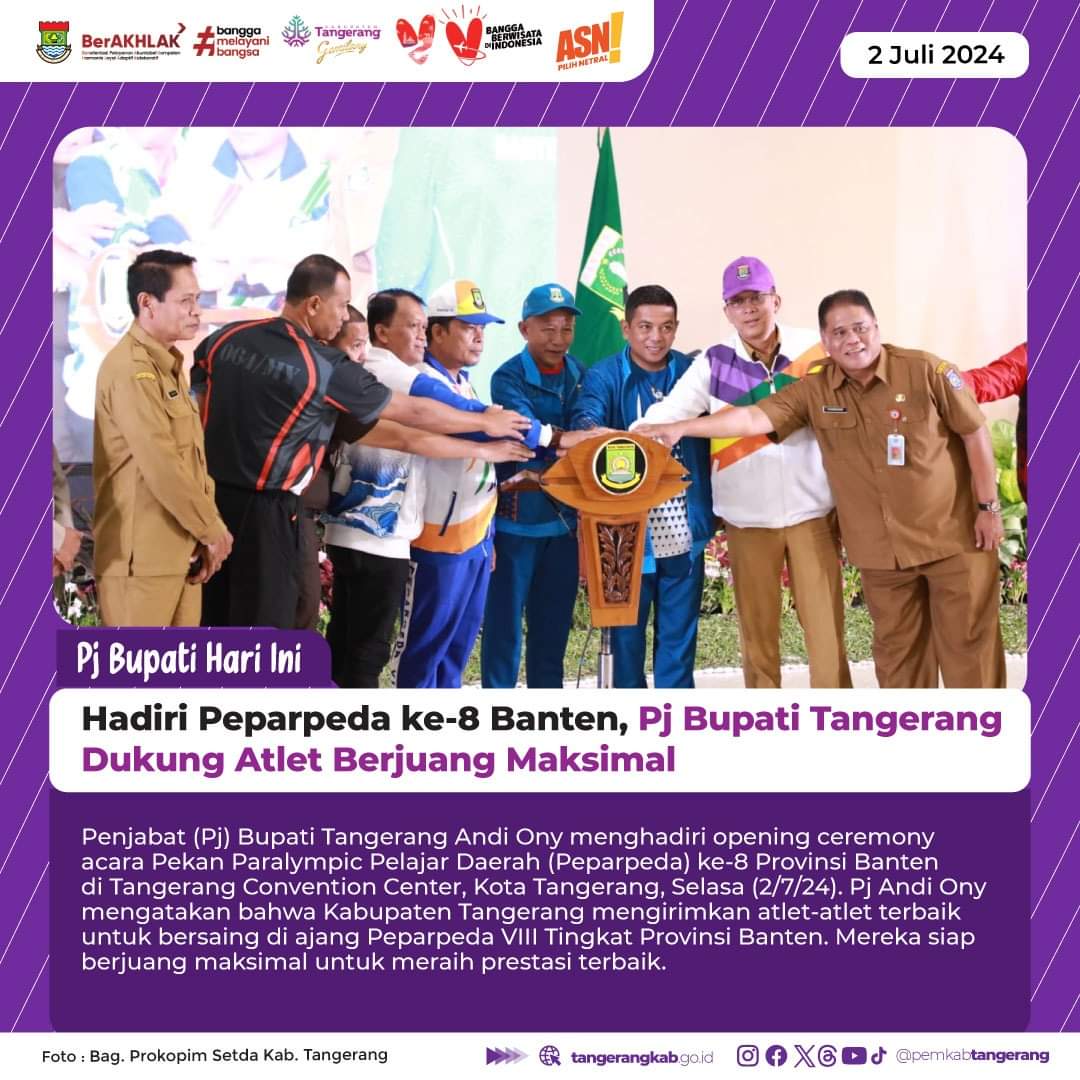 “Kami mengirimkan atlet-atlet terbaik untuk mengikuti ajang Peparpeda ini dan siap berjuang maksimal untuk meraih prestasi terbaik demi Kabupaten Tangerang yang semakin gemilang,” kata Pj Bupati Andi Ony.