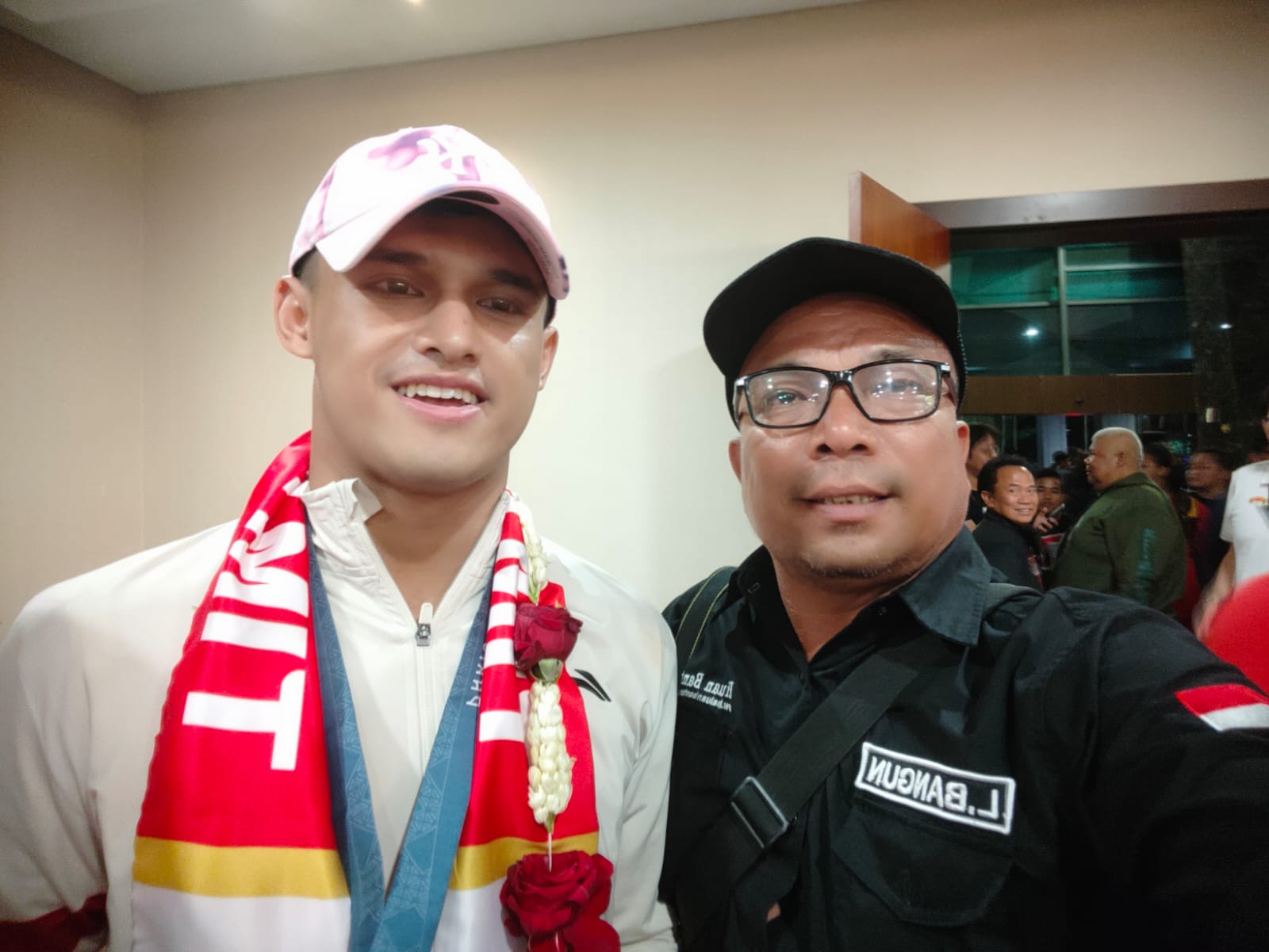 Tangerang, (beritasiber.co.id) — Ketua SMSI Provinsi Banten, Lesman Bangun, hadir dalam penyambutan meriah bagi dua atlet kebanggaan Indonesia, Rizki Juliansyah dan Federik Leonardo, yang baru saja kembali ke tanah air setelah meraih medali emas di Olimpiade Paris 2024. Kedua pahlawan olahraga ini tiba sekitar pukul 22:00 WIB di terminal VVIP 3 Bandara Soekarno-Hatta. (13/8/2024)