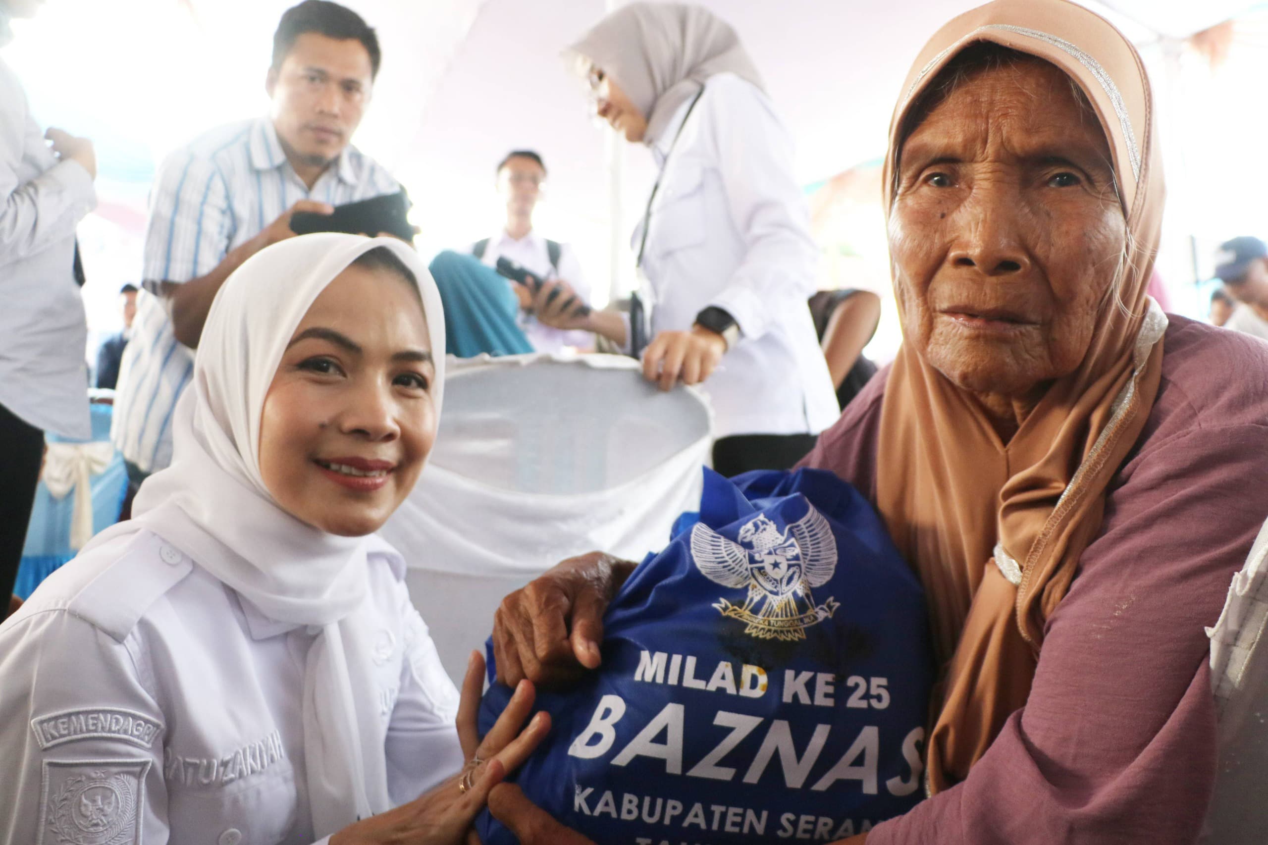 Hal ini disampaikan Bupati Serang Ratu Rachmatuzakiyah disela menghadiri Milad ke-25 Baznas tingkat Kabupaten Serang yang dirangkaikan Peringatan Hari Jadi ke-499 Kabupaten Serang di Halaman Kantor Kecamatan Binuang pada Kamis, 8 Oktober 2025.