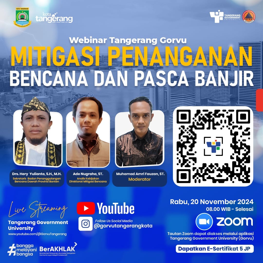 Kota Tangerang, (beritasiber.co.id) – Pemerintah Kota (Pemkot) Tangerang terus berkomitmen mengoptimalisasi strategi mitigasi bencana di Kota Tangerang. Salah satunya, Pemkot Tangerang baru saja menggelar Webinar Tangerang Government University (GORVU) dengan tema “Mitigasi Penanganan Bencana dan Pasca Banjir”.