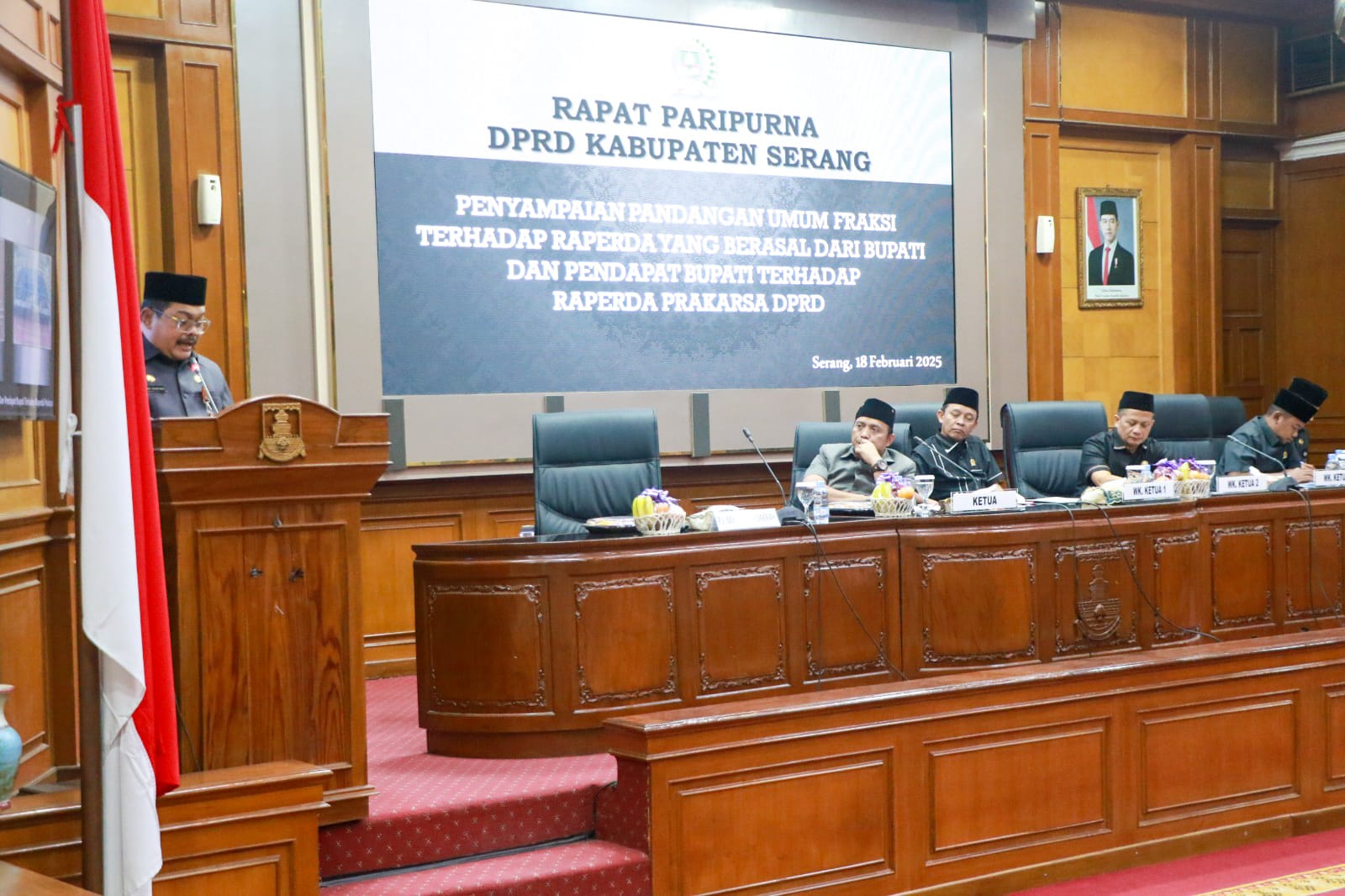 Persetujuan terungkap pada Rapat Paripurna DPRD Kabupaten Serang Penyampaian Pandangan Umum Fraksi Terhadap Raperda yang Berasal dari Bupati dan Pendapat Bupati terhadap Raperda Prakarsa DPRD di gedung dewan setempat pada Selasa, 18 Februari 2025.