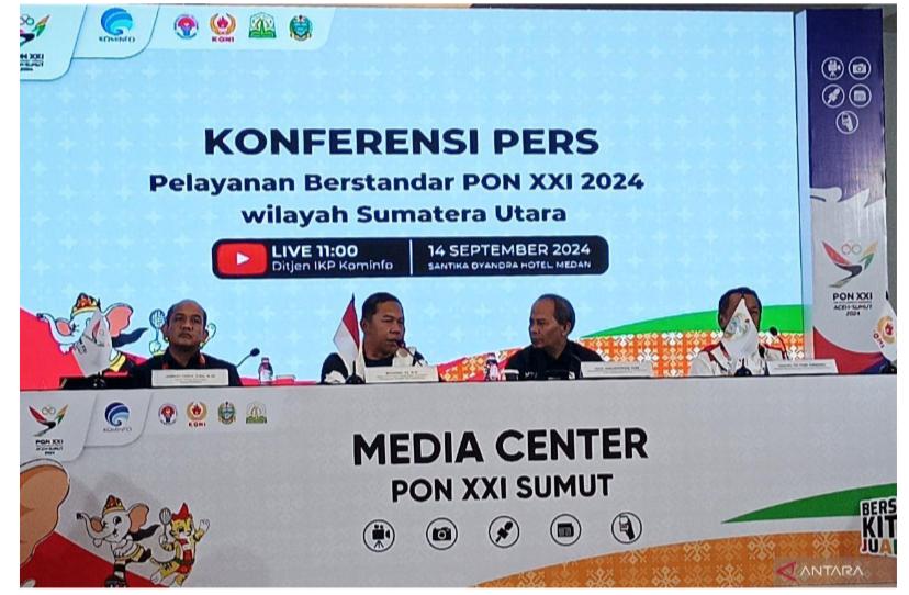 Kepala Bidang (Kabid) Venue PB PON wilayah Sumut Mulyono (kedua dari kiri) dalam konferensi