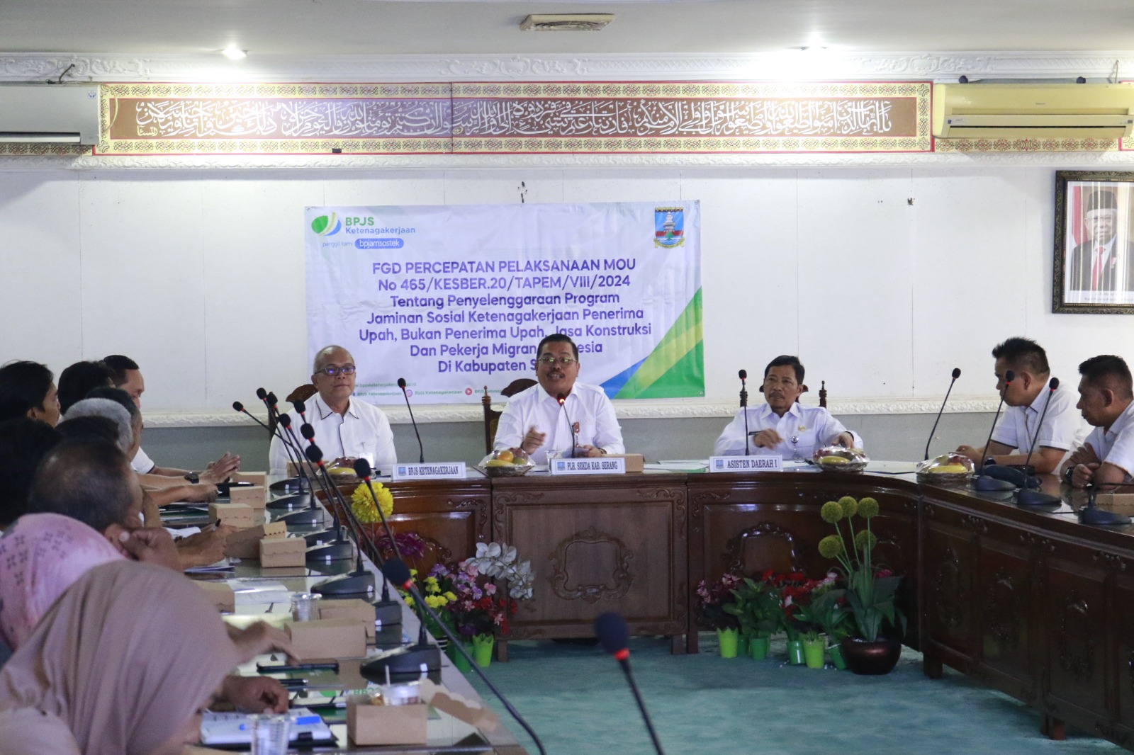 Hal itu disampaikan Pelaksana Harian Sekretaris Daerah (Plh Sekda) Kabupaten Serang, Rudy Suhartanto usai FGD Percepatan Pelaksanaan MoU No 465/Kesber.20/Tapem/VIII/2024 tentang penyelenggaraan program jaminan sosial ketenagakerjaan penerima upah, bukan penerima upah, jasa kontruksi dan pekerja Migran Indonesia di Kabupaten Serang.