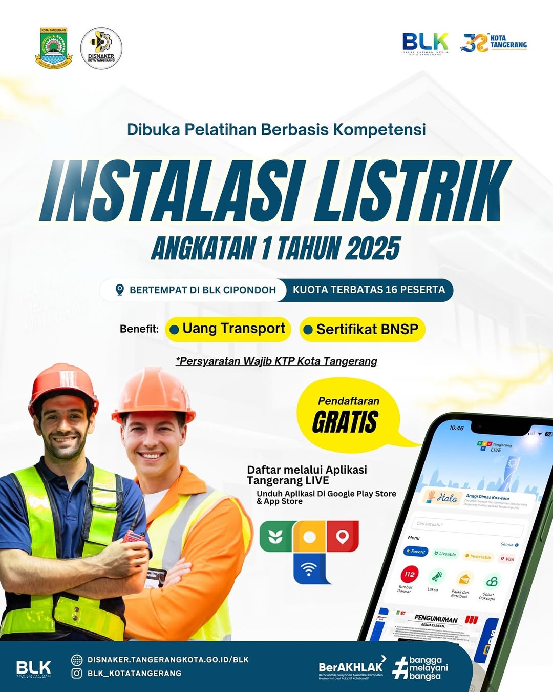 “Sedangkan pendaftarannya dipastikan gratis melalui aplikasi Tangerang LIVE. Jangan lewatkan kesempatan untuk meningkatkan keahlian dan bersiap memasuki dunia kerja dan berwirausaha,” ucap Yasin.