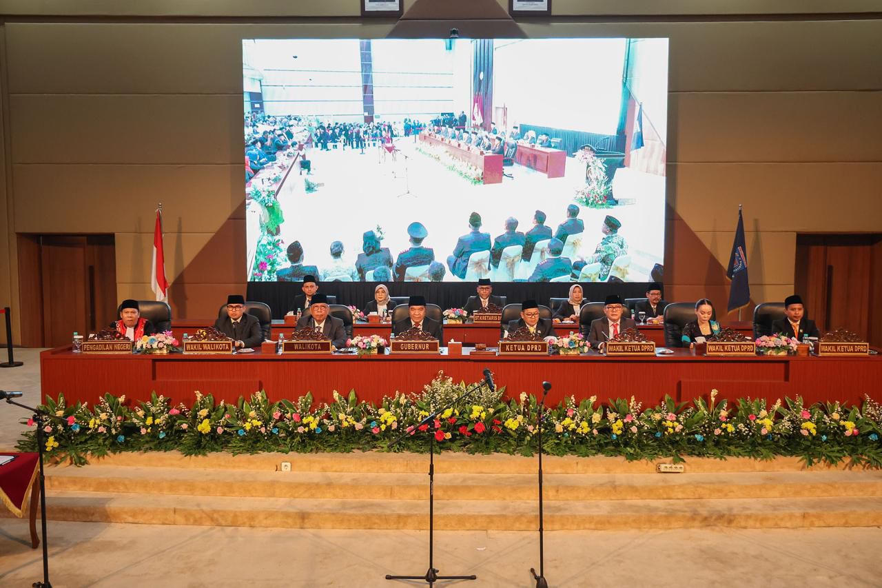 (beritasiber.co.id) – Penjabat (Pj) Gubernur Banten Al Muktabar menghadiri Rapat Paripurna Pengucapan Sumpah/Janji Anggota DPRD Kota Tangerang Selatan Masa Jabatan 2024 – 2029 di Gedung DPRD Kota Tangerang Selatan Jl Raya Serpong No. 1 Setu, Kota Tangerang Selatan, Kamis (29/8/2024). Al Muktabar pesankan semangat serta upaya mencapai kesejahteraan rakyat sebagai semangat dan cita-cita berdirinya Kota Tangerang Selatan, Provinsi Banten, bahkan Kemerdekaan Republik Indonesia.