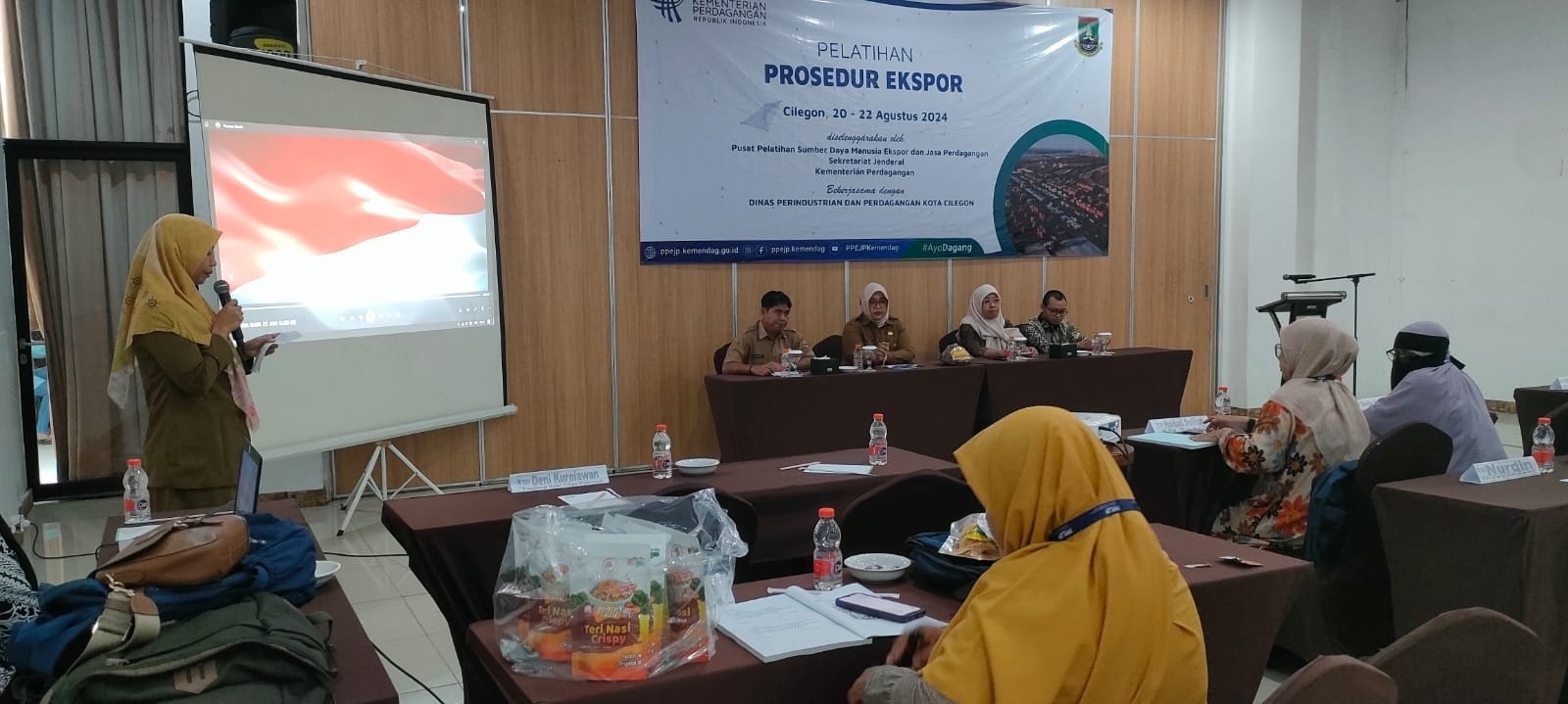 CILEGON, (beritasiber.co.id) – Dinas Perindustrian dan Perdagangan (Disperindag) Kota Cilegon menggelar Pelatihan Ekspor Produk Unggulan Industri Kecil Menengah (IKM) dan Usaha Mikro Kecil Menengah (UMKM) di Ballroom Greenotel Cilegon, Kamis 22 Agustus 2024. Hal itu dilakukan sebagai langkah untuk memperluas pasar produk unggulan IKM dan UMKM hingga ke dunia Internasional.