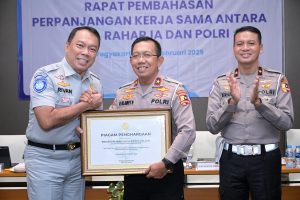 Jakarta, beritasiber.co.id – PT Jasa Raharja dan POLRI terus memperkuat sinergisitas dalam memberikan perlindungan dasar kepada masyarakat yang mengalami kecelakaan melalui perpanjangan Nota Kesepahaman Nomor NK/4/II/2020 dan Nomor P/1/SP/2020 tentang Pemanfaatan Data Kecelakaan LaluLintas dan Data Kendaraan Bermotor dengan Sistem Online, dan Perjanjian Kerja Sama Nomor PKS/8/II/2020 dan Nomor P/2/SP/2020 tentang Pemanfaatan Data Kecelakaan Lalu Lintas dan Data Kendaraan Bermotor dengan Sistem Online.