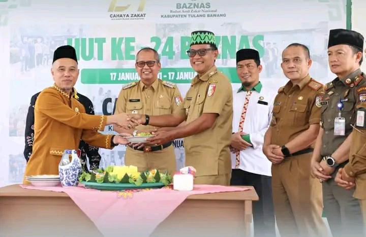 “Saya atas nama pribadi dan pemerintah Kabupaten Tulang Bawang mengucapkan Selamat Hari Ulang Tahun yang ke-24 Badan Amil Zakat Nasional (BAZNAS). Di usia yang semakin matang tersebut, kami doakan semoga BAZNAS kedepannya semakin kuat, terpercaya, dan Modern” .