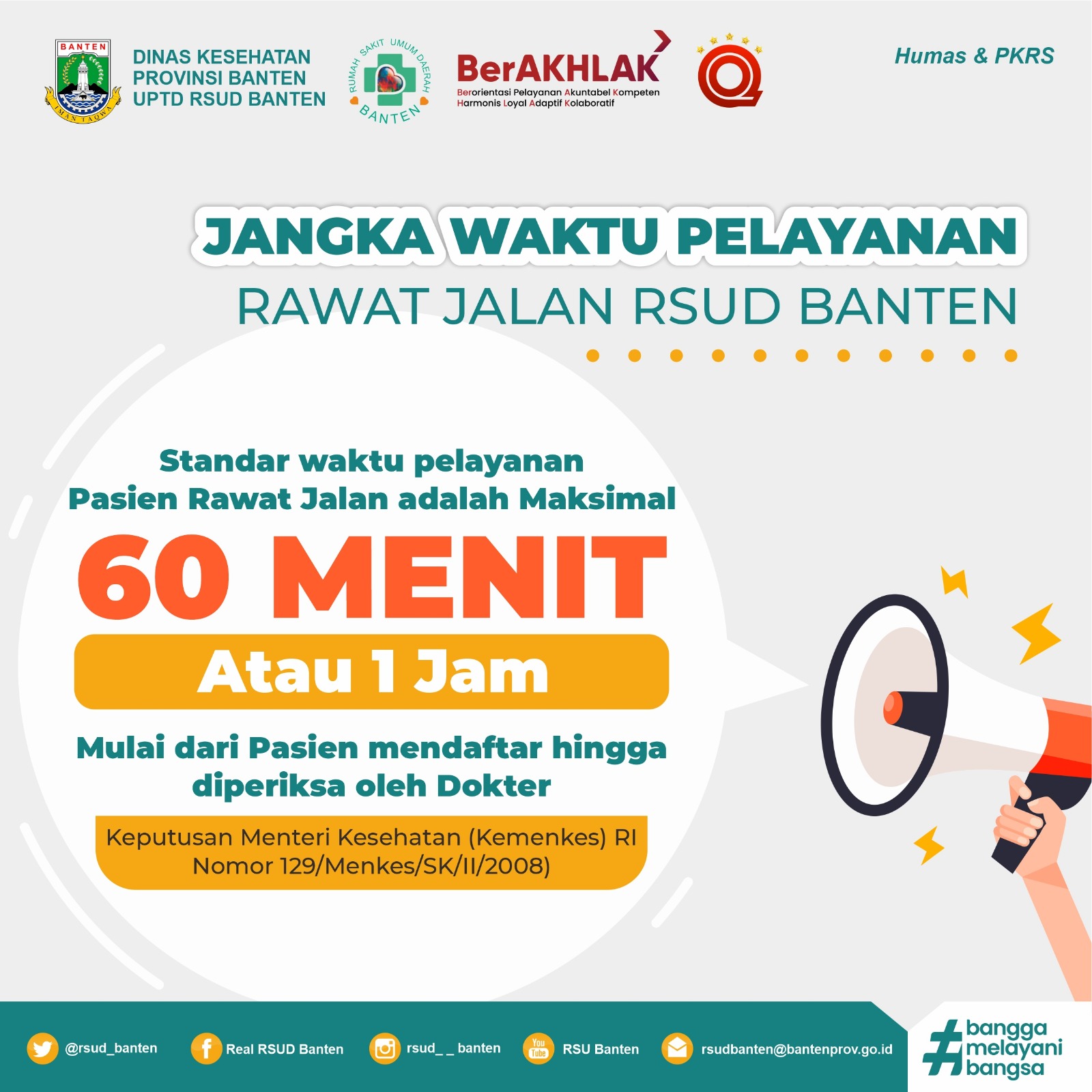 Banten, (beritasiber.co.id) – – Bagi pasien yang akan menjalani perawatan di RSUD Banten, penting untuk memahami standar jangka waktu pelayanan di poli klinik rawat jalan. Berdasarkan Keputusan Menteri Kesehatan (Kemenkes) RI Nomor 129/Menkes/SK/II/2008, waktu pelayanan maksimal di rawat jalan adalah 60 menit atau 1 jam, dari proses pendaftaran hingga pemeriksaan oleh dokter. (6/9/2024)