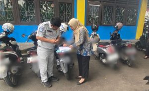 Oleh sebab itu itu Personil UPTD Samsat Serang Bersama Jasa Raharja telah memberikan himbauan melalui pendataan nopol kendaraan di area parkir wilayah kota Serang.