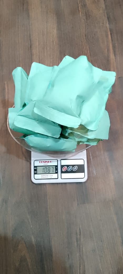 Dari tersangka MM ini, Tim Satresnarkoba berhasil mengamankan 2 bungkus besar tembako sintetis seberat 1.111,2 gram yang disembunyikan di rumah kontrakannya di Kelurahan Pengasinan, Kecamatan Rawalumbu, Kota Bekasi.