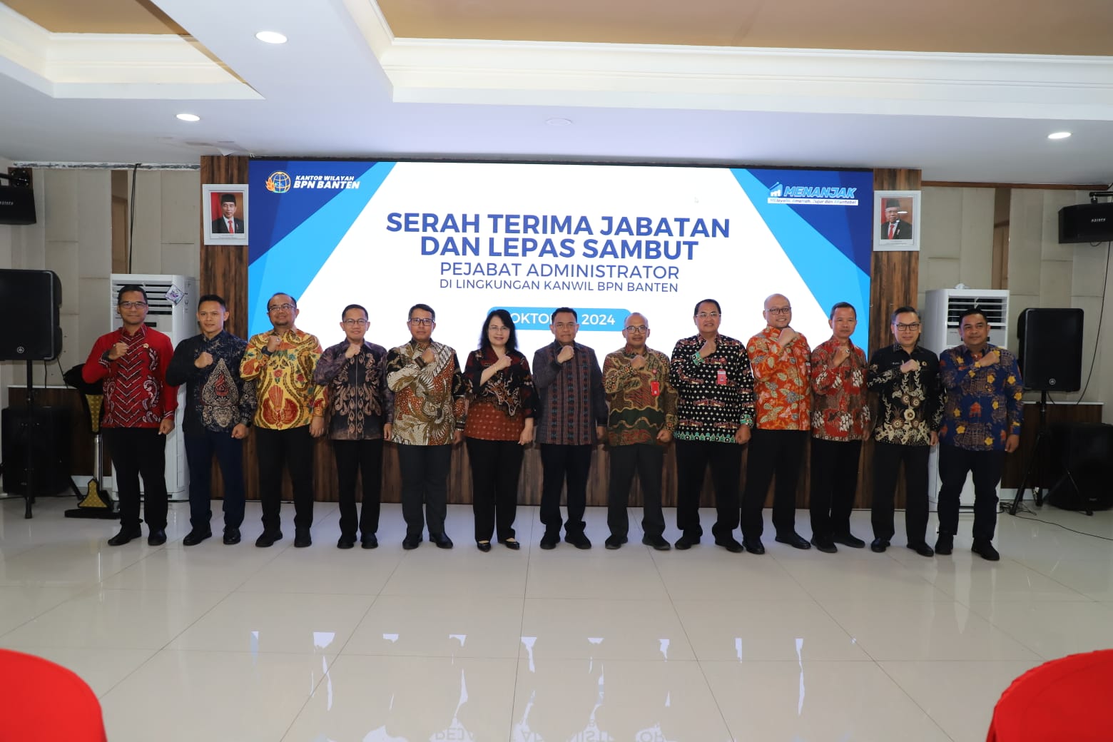 Serah Terima Jabatan Pejabat Administrator yang baru dilantik dan Pejabat Administrator yang memasuki batas usia pensiun digelar bersamaan pada Selasa (1/10/2024) di Aula Baduy Kantor Wilayah BPN Provinsi Banten.