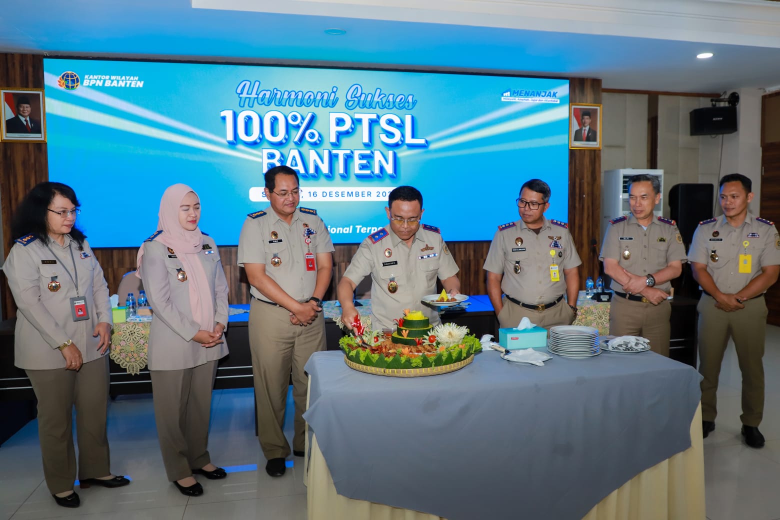 Bersyukur target PTSL dapat rampung seluruhnya, Kepala Kantor Wilayah Badan Pertanahan Nasional (BPN) Provinsi Banten, Sudaryanto menggelar Tasyakuran Harmoni Sukses 100% PTSL Banten yang digelar secara sederhana di Aula Baduy Kantor Wilayah BPN Provinsi Banten, Senin (16/12/2024).