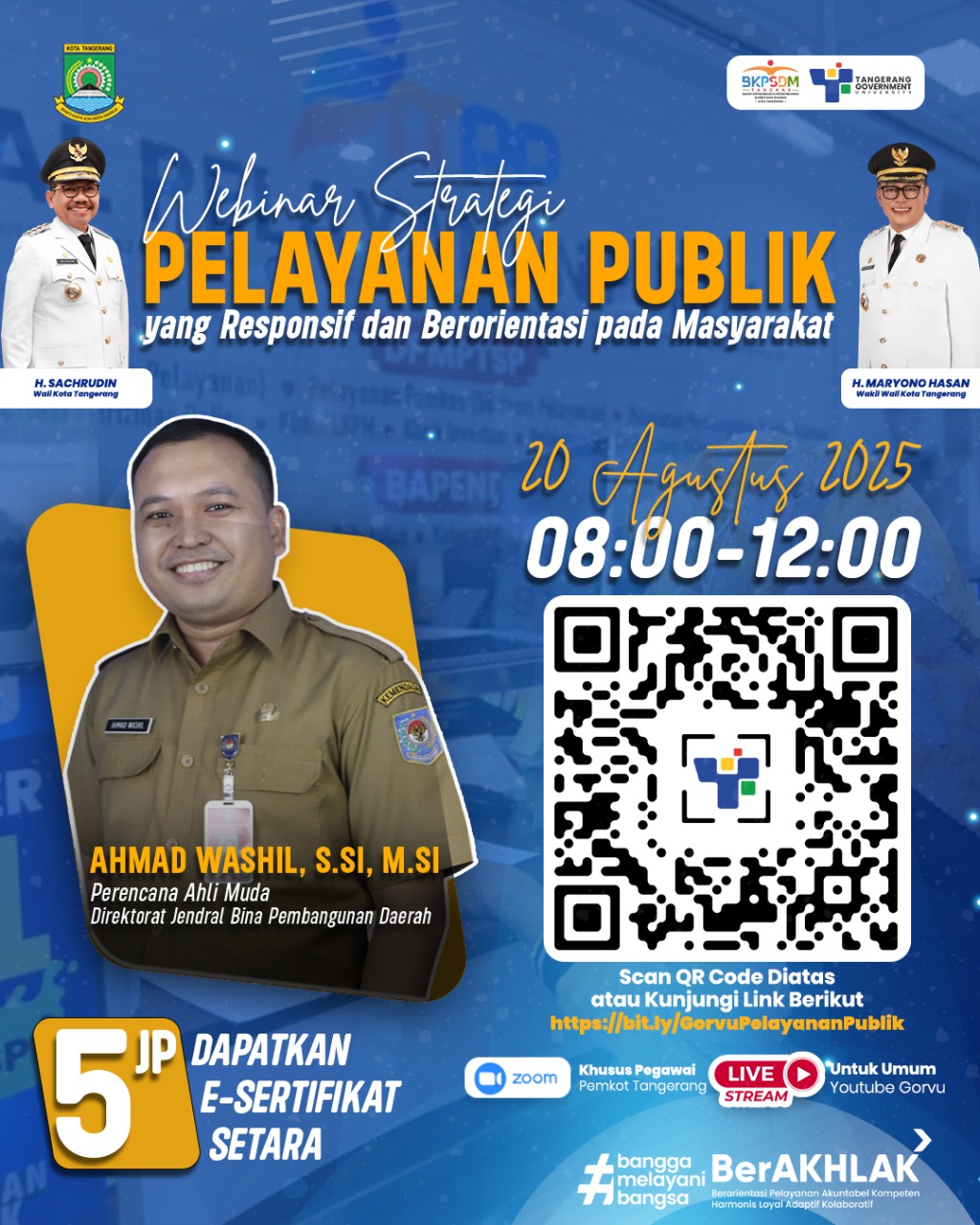 Ia melanjutkan, Pemkot Tangerang juga menghadirkan narasumber berkompeten untuk mendukung webinar berjalan dengan suasana yang interaktif, yakni Ahmad Washil yang sekarang sedang menjabat sebagai Perencana Ahli Muda, Direktorat Jendral Bina Pembangunan Daerah, Kementerian Dalam Negeri Republik Indonesia.