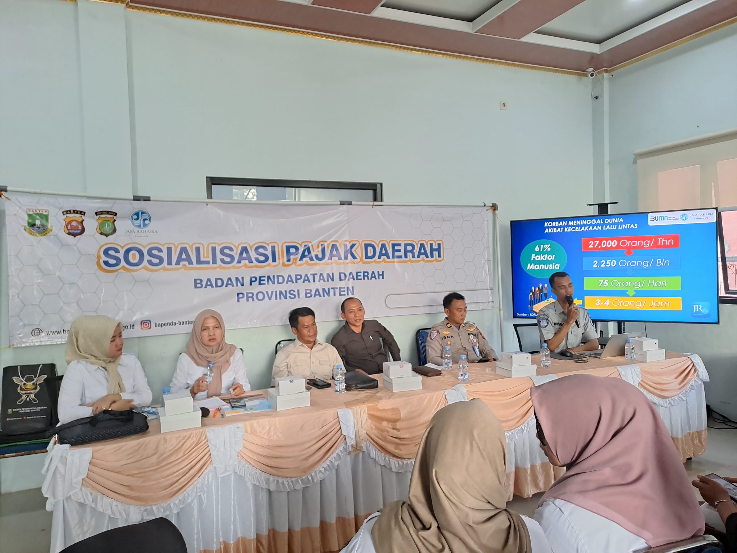 Tangerang, (beritasiber.co.id) – Jasa Raharja Cabang Tangerang bersinergi dengan Badan Pendapatan Daerah (Bapenda) Provinsi Banten dan Kepolisian Polda Banten untuk melaksanakan penyuluhan serta sosialisasi kebijakan Opsen Pajak Kendaraan Bermotor (PKB) dan Bea Balik Nama Kendaraan Bermotor (BBNKB). Kegiatan ini berlangsung di Kantor Desa Jayanti, Kecamatan Jayanti, Kabupaten Tangerang, sebagai bentuk nyata upaya meningkatkan pemahaman dan kepatuhan masyarakat dalam membayar pajak kendaraan bermotor.